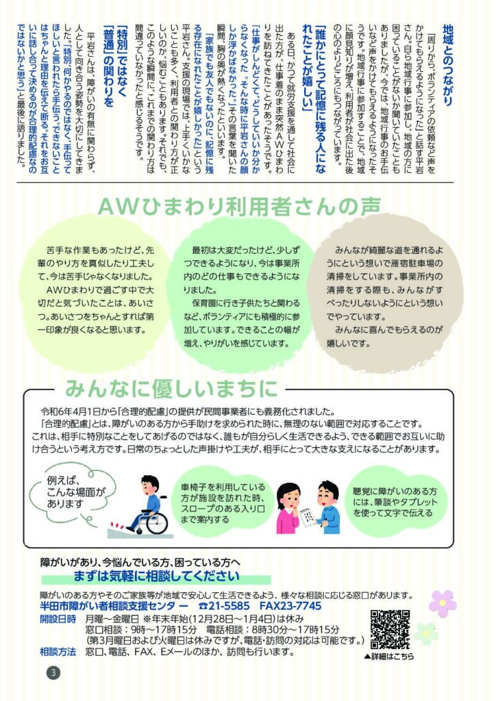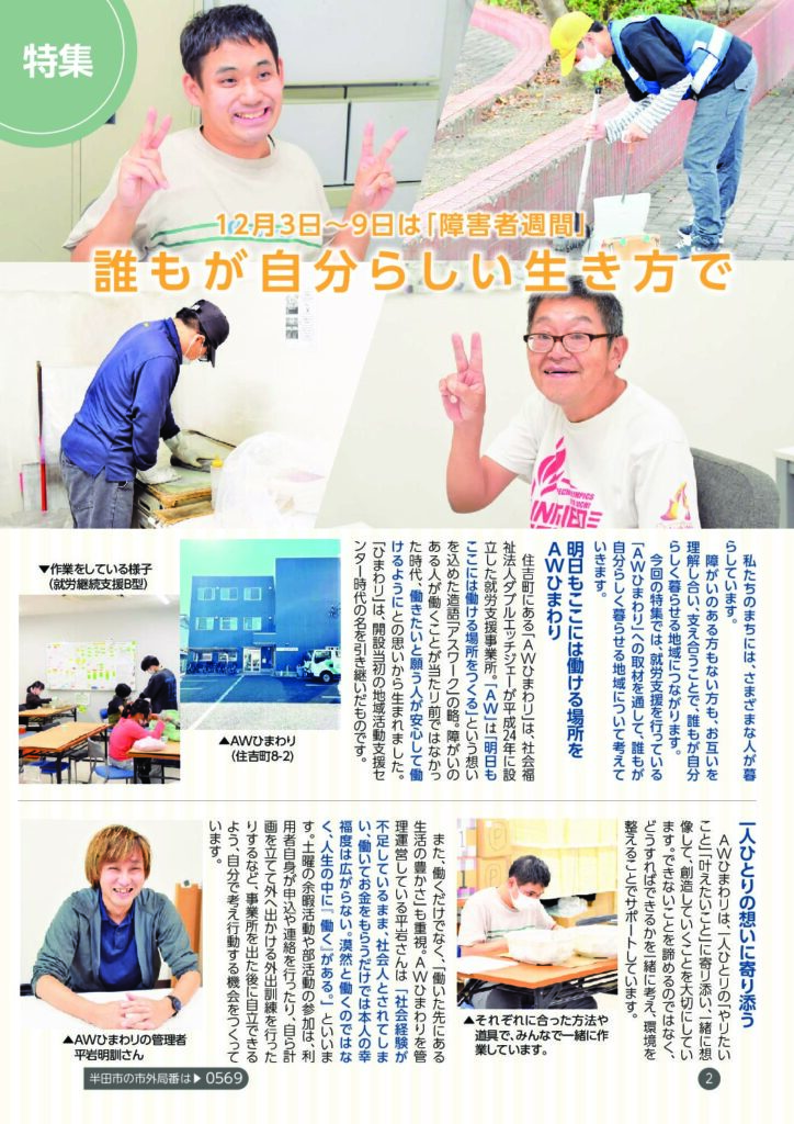 社会福祉法人ダブルエッチジェーの事業所(AWひまわり)が半田市市報に掲載されました。